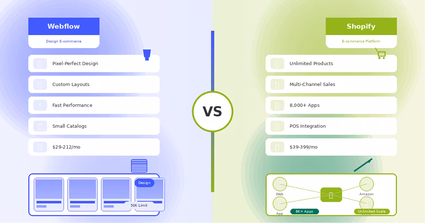 Choosing between Webflow and Shopify represents a critical decision about your e-commerce strategy: do you prioritize stunning design flexibility or comprehensive e-commerce functionality? Understanding this trade-off is essential before investing in your online store.