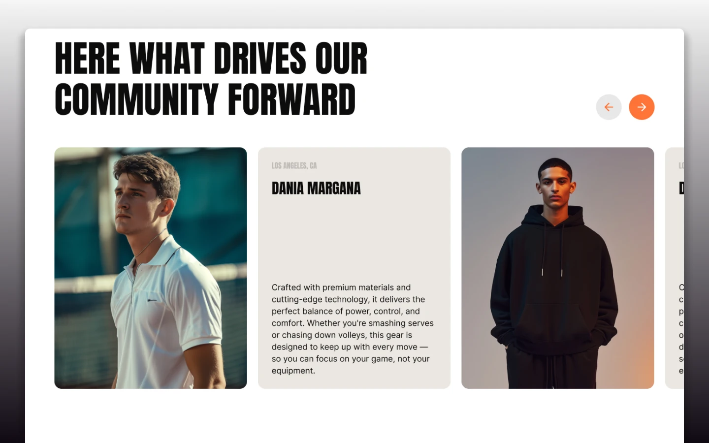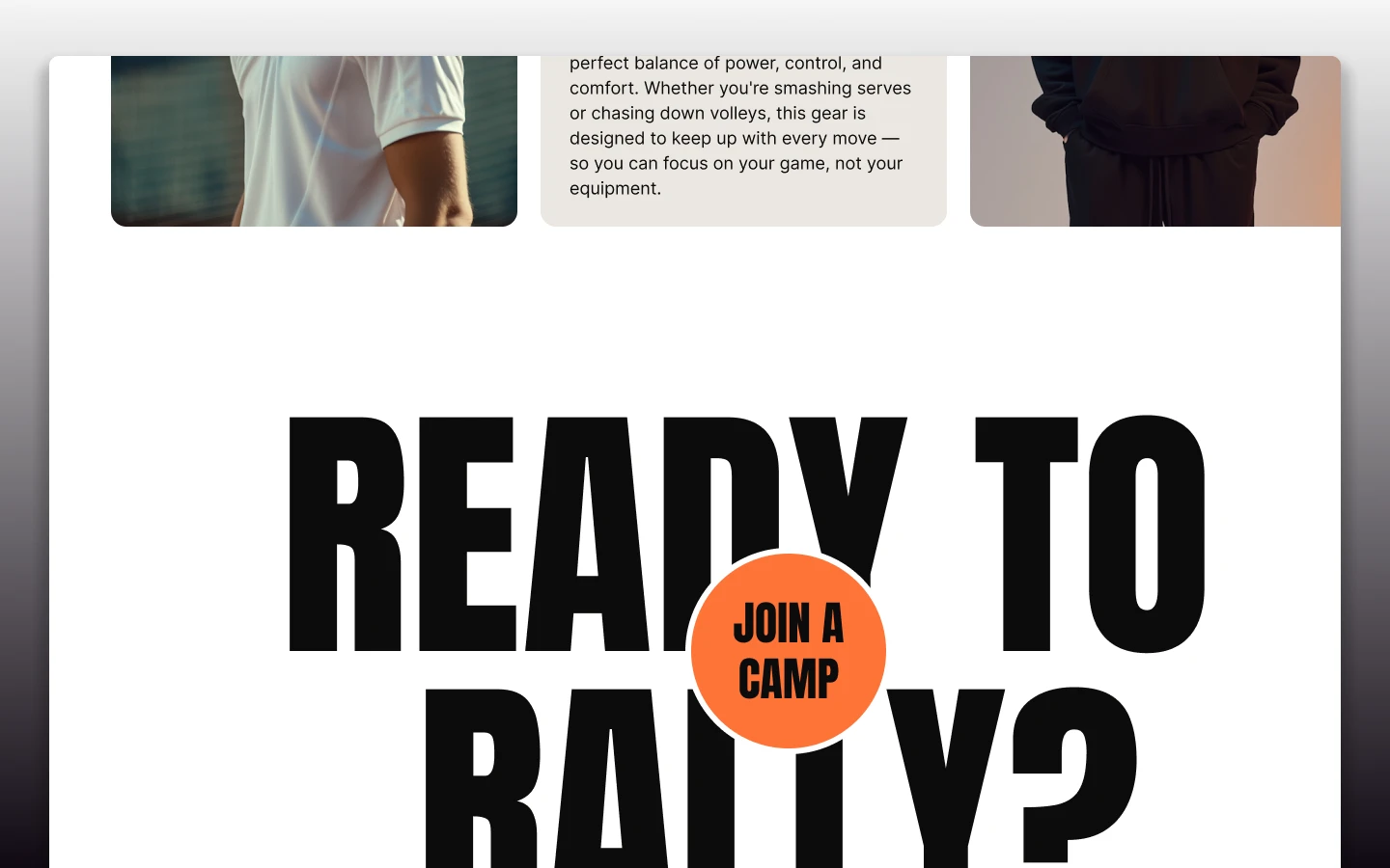 Clean sections, strong typography, and bold visuals designed for sports brands.
